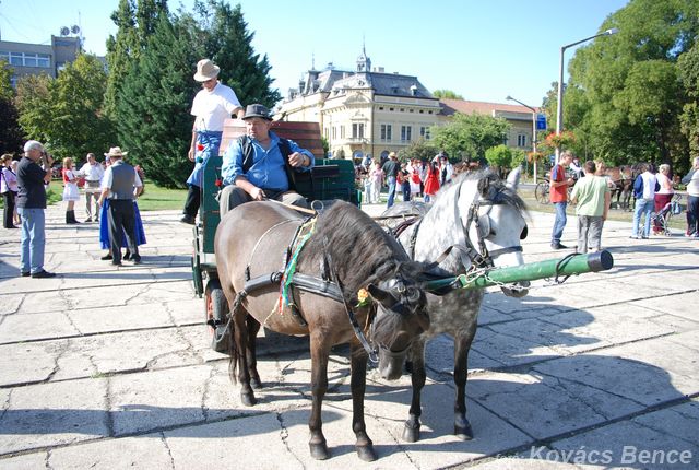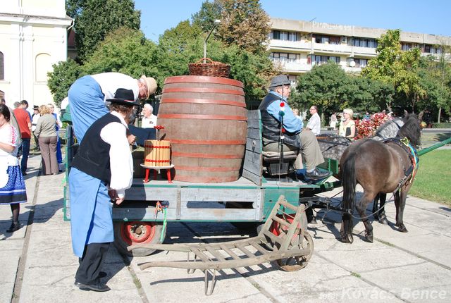 Muzsikával, tánccal, hintókkal várták szombaton délután a szarvasiakat a város főterére. A Szarvasi Gazdák Nemzetiségi Hagyományőrző Egyesülete, immár ötödik alkalommal rendezte meg a hagyományos szüreti mulatságot, amely ezúttal is hajnalig tartó báli mulatsággal végződött. A gazdák három mázsa szőlőt ajánlottak fel, ebből préselték ki a friss szőlőlevet, amelyhez szalámival, sajttal és szőlőszemmel díszített falatkákat kínáltak. Népi zenekar és táncosok is voltak, a Csépai Táncegyüttes szórakoztatta a közönséget. A táncos műsor után felsorakoztak a lovas hintók, melyeken a szüreti mulatság népviseletbe öltözött résztvevői a Rákóczi úti idősek otthonához mentek. Múltidéző produkciójukkal kellemes meglepetést okoztak az otthon lakóinak. Estefelé a hintók a 44-es főúton Ezüstszőlő felé vették az irányt. Az ottani közösségi házban folytatódott a rendezvény.