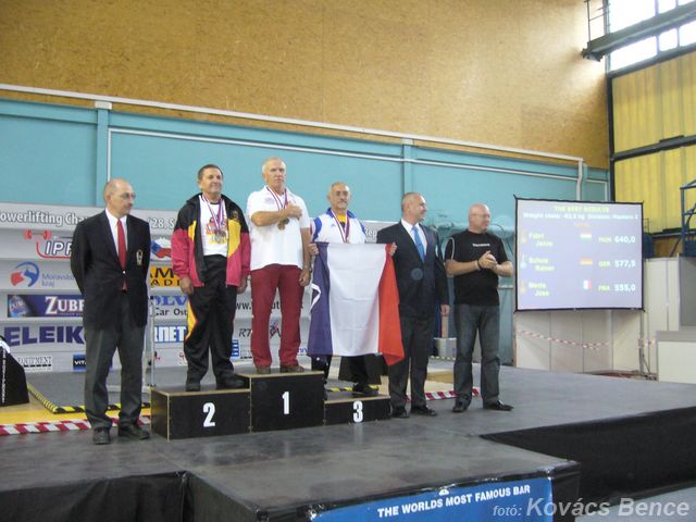 Felhúzásban az örökifjú sportoló 270 kg-os eredményt ért el, így összetettben 640 kg-mal élete első masters világbajnoki címét nyerte. Fábri János 62,5 kg-os összeredménybeli különbséggel előzte meg, a második helyezett versenyzőt, így 3 arany és 1 ezüst birtokában térhetett haza. Csak emlékeztetőül megemlítenénk, hogy júniusban a csehországi Pilsenben a masters erőemelő Európa-bajnokságon 625 kg-mal szerezte meg az aranyérmet és ez már a negyedik Európa-bajnoki címe volt.