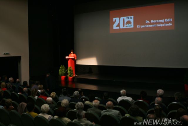 Az egyébként is minidig szomorúnak tűnő Herczog Edit, EU-s parlamenti képviselő, az est egyik díszvendége emlékezett vissza a pártalakítás idejére és a névválasztásra, majd őt követte Varga Zoltán önkormányzati miniszter, az MSZP Békés megyei elnöke, aki a baloldali értékekről beszélt. Mindannyiuk beszédéből kiderült, hogy nem értik, hol rontották el, hogy ekkora népszerűségvesztést legyenek kénytelenek elszenvedni, de mindannyian bíztak abban, hogy a fiatalok fel fogják ismerni a baloldaloldali értékeket, ami a párt megfiatalodásához, megújulásához vetet majd. Ezután egy, az elmúlt 20 év képeiből készült kisfilmet nézhettek meg az egybegyűltek, majd tovább folyt az ünneplés.