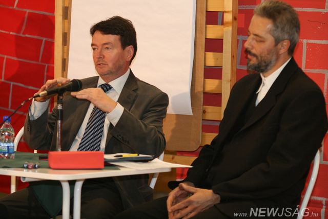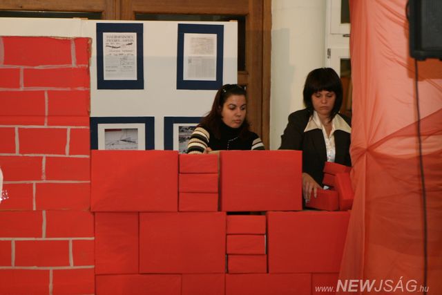 A Városi Könyvtár szervezésében érdekes rendezvényen emlékeztek a megjelentek a berlini „Fal” leomlására. Az eseménynek a Vajda Péter Gimnázium aulája adott otthont. Az előadók és a vendégek stílszerűen falat szimbolizáló díszletek között foglaltak helyet,és a hangszórókból természetesen a Pink Floyd zenéje szólt. Az előadók előtt Babák Mihály polgármester köszöntötte az érdeklődőket, majd egy nem túl rövidre sikeredett megnyitó beszéd után átadta a szót Szuhaj Györgynek és Kozák Jánosnak. A művészettörténet tanár érdekes beszélgetést folytatott az építésszel falakról, tetőkről, építkezésekről, sőt, negatív falakról. Utánuk Szabó József Jenő nyugalmazott határőrezredes következett, aki aktív szemlélője volt a húsz éve történteknek, ami Magyarországon kezdődött a határnyitással, folytatódott a berlini „Fal” lebontásával, és vezetett a német újraegyesítéshez. Előadását követően a stilizált berlini „Fal” lebontásával megnyílott az út Ivánkovics Zoltán „Esély Európának” című kiállítása előtt.