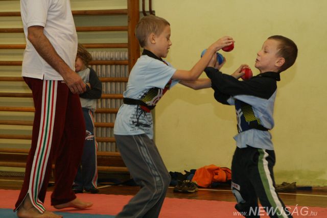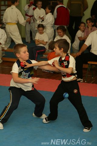 A látványos technikákat követően a legkisebbek foglalták el a terepet, akik egy, a testi épségük megóvására kialakított öntapadós labdákkal vívott küzdelemben mérhették össze tudásukat. A legnagyobbak és a legkisebbek közötti, 8-11 éves korosztályoknál sem volt hiány harci szellemben, ami komoly reményekkel kecsegtet az ifjú sportolók, a szülők, valamint a csabacsűdi és szarvasi testvéregyesületek számára.