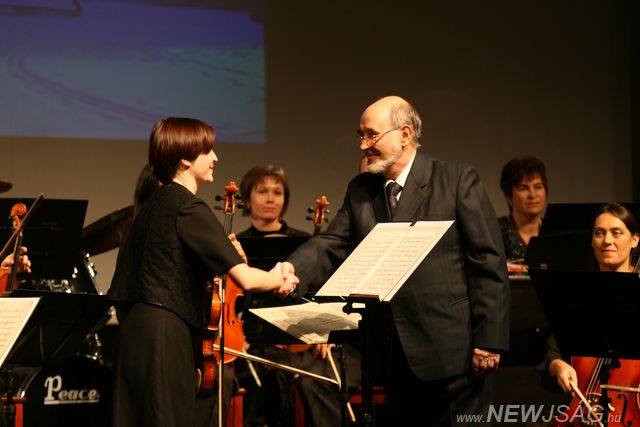 A kellemes koncert során azért kicsit meglepődtem, mikor két zeneszám között Polgármesterünk felszaladt a színpadra, és eltűnt a díszletek mögött. Elrettentem a gondolattól, hogy hegedűvel a kezében tér vissza, de szerencsére nem ez következett, hanem Vas István koncertmesternek adta át a „Közművelődésért” díjat, aki 1983 óta szervezi a Szarvasi Kamarazenekar koncertjeit. Vas István elmondta, hogy a díj nem csak őt, hanem a zenekar egészét illeti.