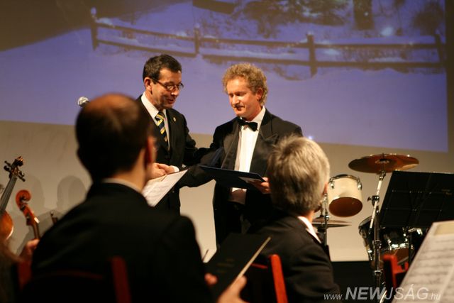 A kellemes koncert során azért kicsit meglepődtem, mikor két zeneszám között Polgármesterünk felszaladt a színpadra, és eltűnt a díszletek mögött. Elrettentem a gondolattól, hogy hegedűvel a kezében tér vissza, de szerencsére nem ez következett, hanem Vas István koncertmesternek adta át a „Közművelődésért” díjat, aki 1983 óta szervezi a Szarvasi Kamarazenekar koncertjeit. Vas István elmondta, hogy a díj nem csak őt, hanem a zenekar egészét illeti.