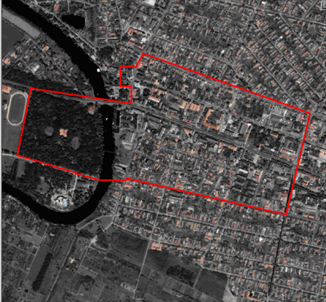A Holt-Körös bal partján található Erzsébet-liget, térképen látható lehatárolt területe, továbbá a Holt-Körös jobb partján található Szabadság út szakasza, majd a Vajda Péter utcán felfelé haladva a Vasút úttal való kereszteződésnél ráfordulva a Béke utcára, tovább a Jókai Mór utcán, (balra fordulva) és bezárva a kijelölt területet a Holt-Körös partján túli Erzsébet-liget déli határával a Városközpont minden oldalról lehatárolt területe jelenik meg.