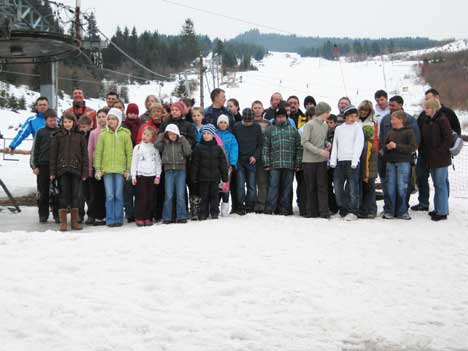 Másnap a reggeli elfogyasztása után mindenki sietett, hogy kipróbálja sítudását. Három pálya nyújtott nekünk lehetőséget a sportolásra. Az egyik pályán a román serdülő válogatottal síelhettünk együtt – mely a kezdők számára is alkalmas volt – a másik pálya tetejéről gyönyörű volt a kilátás, és összekapcsolódott az elsővel. A harmadik az erdőn keresztül a felvonó mentén haladt. Ez síelők számára nem a legalkalmasabb a kanyarodás miatt, de azért mi is kipróbáltuk. A Big-Foot-ot is sokan használták, ez a normális sílécnél jóval kisebb léc, volt aki kipróbálta a szánkópályát, és volt aki ezeket a pillanatokat megörökítette. Valaki megpillantotta a medve barlangját és a lábnyomait. A szállás területén a díjnyertes új- foundlandi kutyákkal is összebarátkoztunk, és megismerkedtünk a segítőkész felvonós bácsival is. A finom vacsora után Lázár Zsolt lelkész bácsi gitár kíséretével énekeltünk egyházi dalokat. A többség azonnal ágyba zuhant, de ez alól kivételt jelentettek a társasjátékozók és a filmet nézők. Az első nap mindenki számára élménydúsan telt.