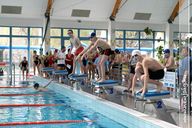 Ismét kiírásra, és egy heti csúszással megrendezésre került a városi iskolák felsőseinek szokásos tavaszi úszóversenye. A III. és IV. korcsoportos gyerekek mell, hát és gyorsúszásban mérhették össze erejüket, technikájukat. Ahogy azt korábban megállapítottam már, felsős korban észrevehetően kevesebben indulnak a városi versenyeken, ami egyrészt a kamaszodásnak tudható be, de az is szerepet játszik, hogy ilyen minőségű uszodánk is csak kb hat éve van, azaz az a biztató jelek ellenére az úszókultúra még mindig gyerekcipőben jár Szarvason. Az sem volt szerencsés, hogy az egy hét csúszással pont Fő téri „Tavaszváró” iskolai gálája elé került, így Fő téris induló nem is volt. A mindössze 30 indulóból 19 fiú és 11 lány állt rajtkőre, vagy hátúszásnál kapaszkodott a kőbe. A kisszámú mezőny ellenére sok egyéni csúcs született.
