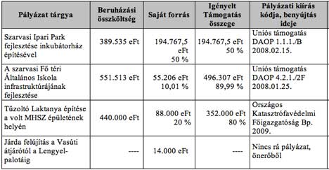 Az alábbi táblázatot Petényiné Bencsik Anita bocsátotta a [newjság], és oldalunk olvasóinak a rendelkezésére, amiben a folyamatban levő beruházások pénzügyi részletei tekinthetők át.