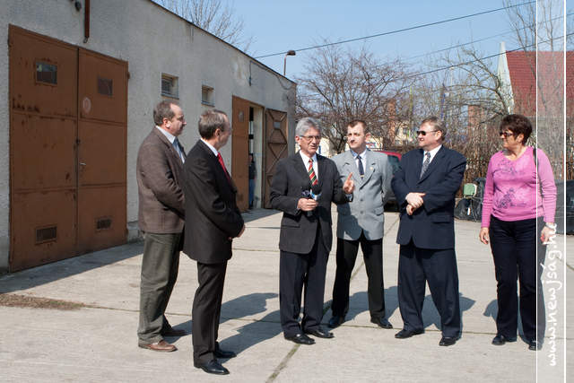 Az első állomás az egykori MHSZ épülete volt, ahova remélhetőleg hamarosan, természetes jelentős átalakítási munkálatok után ki fog költözni a Tűzoltóság laktanyája. Az objektumot jelenleg a Tessedik Táncegyüttes használja, ők egy csere következményeként újabb épületet kapnak a városon belül. Bíró Zoltán tűzoltóparancsnok örömét fejezte ki, hogy európai körülmények között szolgálhatnak majd.