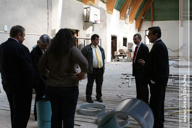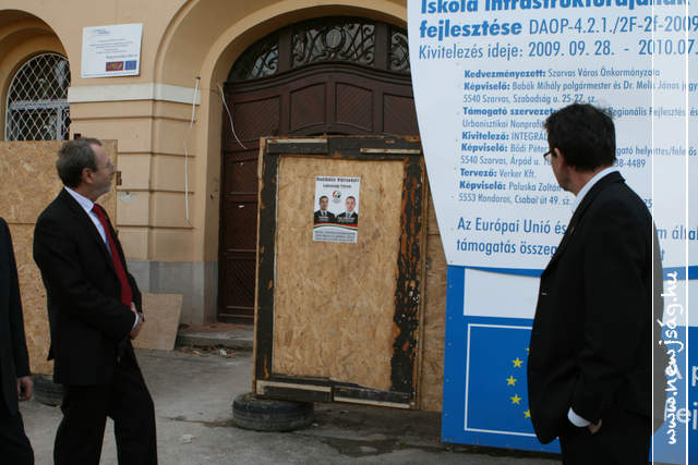 A bejárás következő állomása a Fő téri Általános Iskola felújításának megtekintése volt, amit szintén az Integrál végez. Babák Mihály fontosnak tartja, hogy szarvasi fejlesztéseknél szarvasiak kapjanak munkát. Bődi Pétertől, az Integrál Zrt. vezetőjétől kapott adatok alapján az Inkubátorháznál és a Fő téri felújításánál 71 szarvasi, 8 szentandrási, csabacsűdi és örménykúti, 6 kondorosi, 6 békési és 6 kunszenti dolgozik.