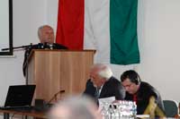 Köszöntőt mondott Babák Mihály polgármester, aki következetesen Felvidékként emlegette Szlovákiát, amitől kicsit megfagyott a hangulat, amit Mótyán Tibor hol szlovákul, hol magyarul olvasztott fel.