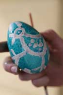 A küszöbön levő ünnep örömére beindultak a húsvéti gyerekprogramok. Péntek délután a Körös-Maros Nemzeti Park munkatársai várták az ügyes kezű fiatalokat egy kis kézműves programmal, amik az alkalomhoz kapcsolódtak. Lehetőség volt különböző technikákat kipróbálni, pulykatojásra viasszal mintát rajzolni, majd megfesteni, filctollal motívumokat festeni, vagy a speciális harisnyás tojásfestést megtanulni, ahol a tojás felületére egy harisnyadarabbal valamilyen növényt rögzítettek, majd festékfürdőbe mártottak. A kivétel után a levél lenyomata szépen meglátszott a tojás felületén. Amíg a lányok előkészültek, addig a fiúk locsolóverset tanultak.