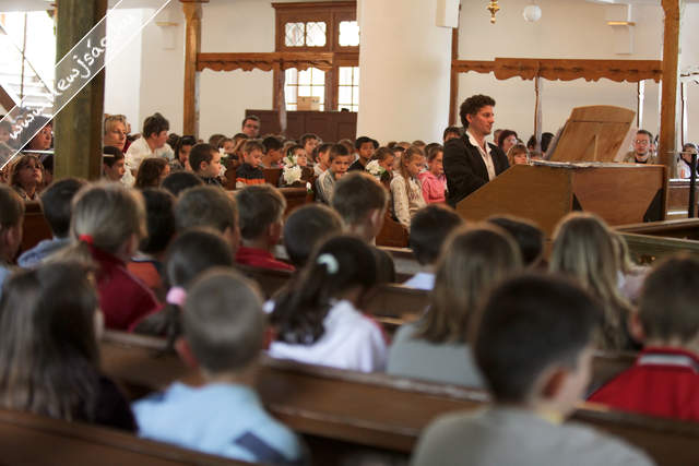 Rákász Gergely adott ma délelőtt orgonakoncertet az Evangélikus Ótemplomban. Lépett már fel korábban is ugyanitt, akkor is hatalmas sikerrel. A délelőtti előadás zenei anyaga diákoknak volt összeállítva. A művész most is érdekes történetekkel tette érdekesebbé a zeneszámok közötti szüneteket, amikor az adott zeneszerzőről, a darabról, vagy a korról mondott olyan adalékokat, ami nem hagyta lanyhulni a többnyire benkás gyerekek figyelmét, akik kétszer vagy háromszor is visszatapsolták Rákász Gergelyt egy kis ráadásért. Egy játékba is bevonta a gyerekeket, mégpedig Ravel Bolerojának egyre hangosodó zenéjére vár történeteket Facebookos oldalán az orgonista, amik közül a jövő héten kiválasztják a legjobb történetet, és a nyertes egy CD-t kap a művésztől. A további zenehallgatás sem a gyerekeken múlott, de Lázár Zsolt evangélikus lelkész figyelmeztette őket, hogy ha most nem lesz vége a koncertnek, akkor borul az ebédeltetési rend, és az éhes gyomrok véget vetettek a ráadások sorának. Az előadás végén Molnár Istvánné igazgatónő kérte a művészt, hogy írjon pár sort a Benka nagy könyvébe, hogy nyoma maradjon az illusztris vendégnek.