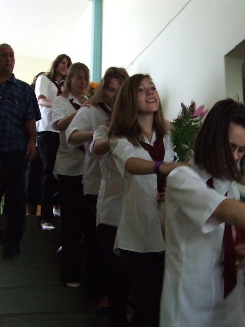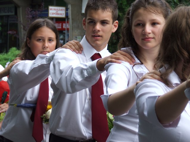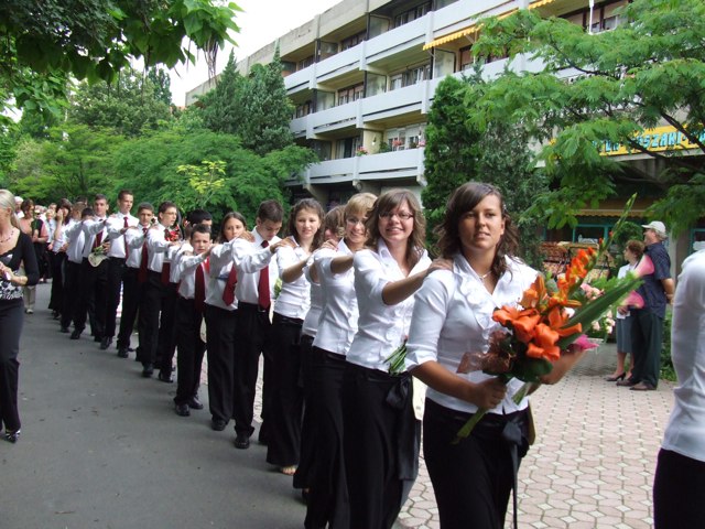 Szombaton a Szlovák Általános Iskolában is elballagtak a nyolcadik osztályosok. A ballagó diákok élükön az igazgató nénivel az utolsó csengetés után végigjárták az iskolát, majd átvonultak a művelődési központba. Itt az iskola tanulói és pedagógusai ünnepélyes műsorral búcsúztatták a ballagó nyolcadikosokat. Medvegy Pálné, igazgatónő nehéz szívvel egy képzeletbeli vonatra ültette a végzős tanulókat. Felidézte a gyerekek egy-egy emlékezetes pillanatát, értékelte az eltelt nyolc évet A ballagó nyolcadikosok egy dal-és verscsokorral kedveskedtek tanáraiknak, diáktársaiknak. A műsorok után sor került a különböző díjak, elismerések kiosztására. Könyvekkel, oklevelekkel jutalmazták a tanulókat. A nyolcadik osztályos tanulók közül 17 diáknak sikerült szlovák nyelvvizsgát tennie, ez is mutatja a nyelvi képzés színvonalát. Minden tanévben két díjat ítélnek oda az iskola tanulói közül, azoknak, akik kiemelkedő teljesítményt nyújtanak történelem-szlovák (Folytán János-díj), matematika-szlovák területen (Kondacs Péter-díj).Idén mindkét elismerést Sztrepka Klaudia kapta. Ezen a napon a ballagók életében egy új szakasz kezdődött, amihez az iskola megpróbált biztos alapokat és használható tudást adni, hogy ez mennyire sikerült további életük során kiderül.