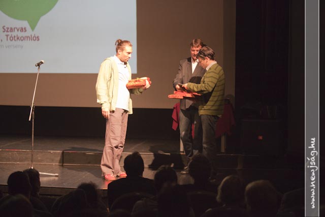 A 2.települési webfilm verseny fődíját és a vele járó 800 ezer forintot a budapesti Harkai Domonkos, Kalmár Bence, Dózsa Virág összetételű csapat vehette át Szabó László Zsolttól, a zsűri elnökétől és Babák Mihály Szarvas város polgármesterétől.