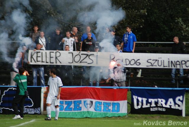 Harminc szegedi ultra is érkezett az Erzsébet ligetbe, akik jó hangulatot teremtettek szurkolásukkal.