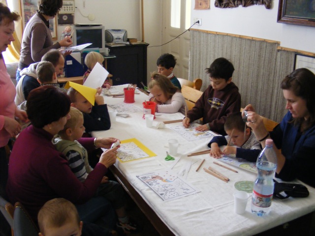 Miközben a templomban a múltra emlékeztek a hívek, a gyülekezet legfiatalabbjai számára gyermek-bibliaköri alkalmat tartottunk. A kisterem vasárnap délelőttönként gyermekzsivajtól hangos. Énekkel, történetekkel, kézműves feladatokkal igyekszünk láthatóvá, hallhatóvá tenni a kicsinyek számára Istent. Nagy szükség van mindarra, amit általuk tanulhatunk. Őszinte, bátor kérdéseik által mi magunk is újragondolhatjuk kapcsolatainkat, hitünket, elevenségük által mindennapi valósággá válik a jól ismert Ige üzenete: “Engedjétek hozzám jönni a kisgyermekeket, és ne akadályozzátok őket, mert ilyeneké az Isten országa.” Lk 18, 16 A legkisebbek után a konfirmandusok veszik birtokba a kistermet. Együtt készülnek fel a tavaszi házi vizsgára, amelynek keretében beszámolnak a tanév során megszerzett tudásukról.