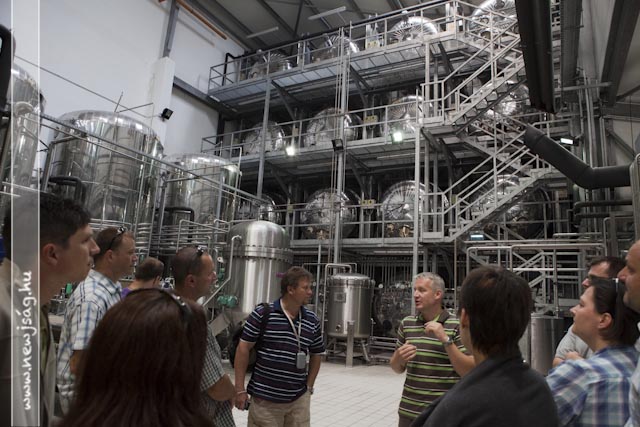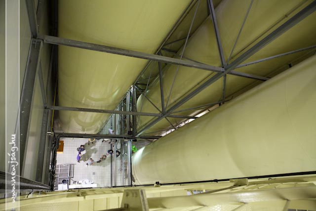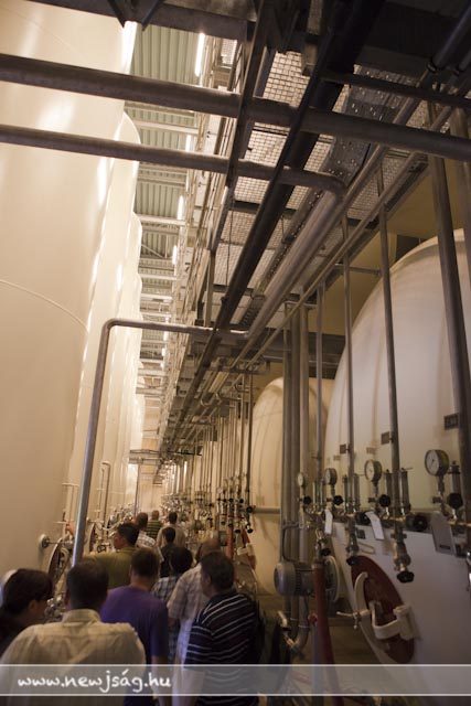 A törleys idegenvezetőnk először a tankpezsgők világába, emeletesháznyi tartályokkal teli terembe kalauzolt bennünket. Az itt készülő pezsgők hatalmas rozsdamentes tartályokban erjednek és érlelődnek, és ezek végzik legtöbbször műanyagdugóval lezárt palackokban.