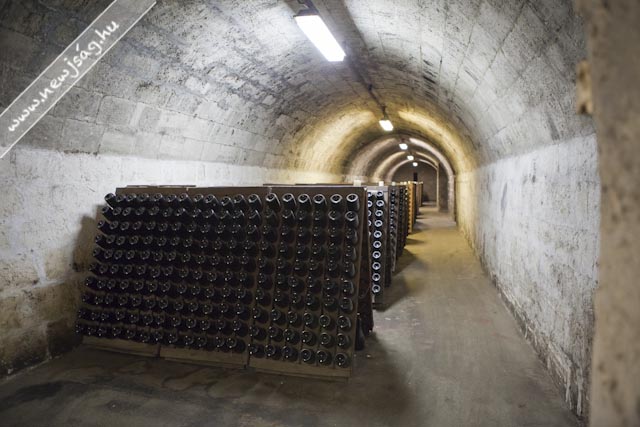 A túrát a legizgalmasabb résszel zártuk, mikor leszálltunk az egyenletesen 14 C fokos pincékbe, ahol a klasszikus pezsgőgyártás ékes bizonyítékait tekinthettük meg. Az alapításkorabeli boltíves pincékben sokszázezer palack aludta két forgatás közötti álmát. A palackok hatalmas állványokon, végeláthatatlan sorokban figyelnek az állandó klimatikus viszonyok között. Maga a palackok sora csodálatos látvány. Ennek az érlelési módnak van egy érdekes momentuma, a degorzsálás, amikor a fejére állított üvegekből fagyasztással szedik ki távolítják el a jégdugóvá fagyott seprőt, amit be is mutattak nekünk a Törley pezsgőmesterei. Ugyanezzel a technológiával készülnek a világ “legnagyobb” pezsgői is Champagneban.
