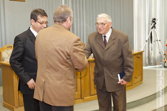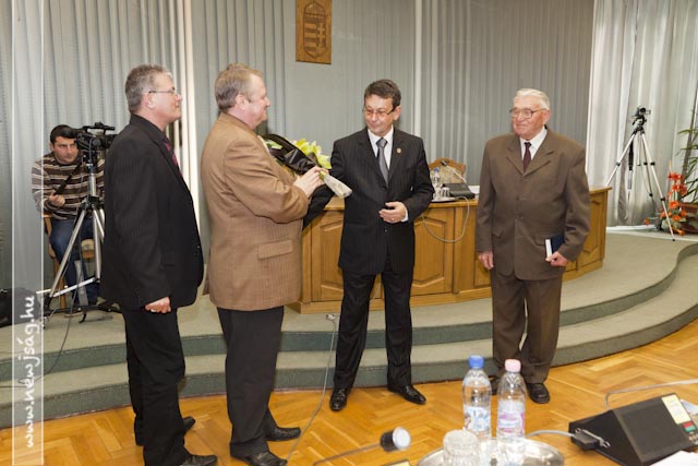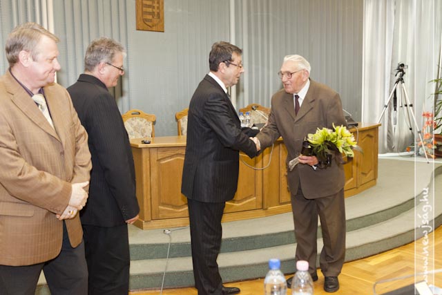 A méltatás után Babák Mihály polgármester, Földesi Zoltán ömlormányzati képviselő, valamint Dr. Melis János jegyző adta át a díjat az ünnepeltnek.