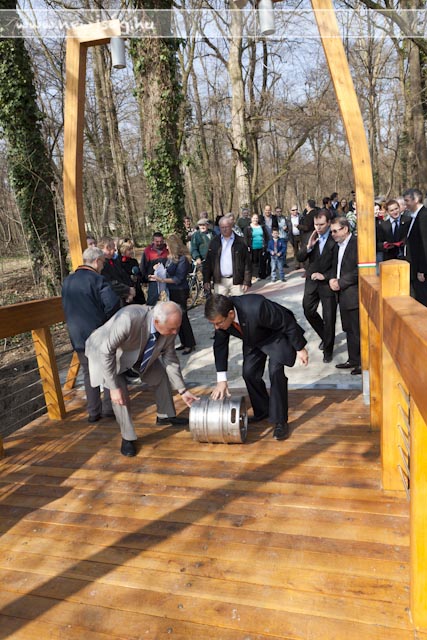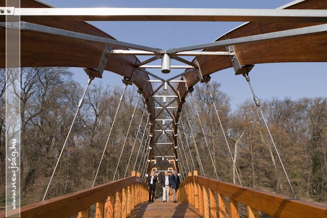 Az üzemszerű gyalogosforgalom számára csak június 1-én adják át majd a Víziszínpad avatásakor. Rajta csak gyalogosan lehet majd átkelni, azaz kerékpárral nem, de polgármesterünk kézmozdulatából az volt kiolvasható, hogy ez lehet, hogy változni fog.