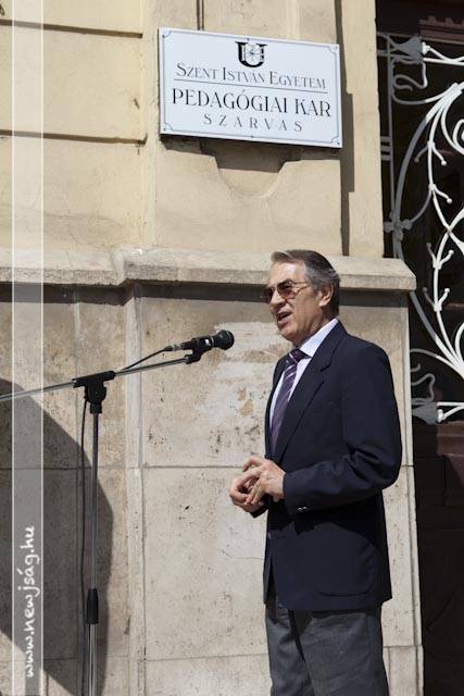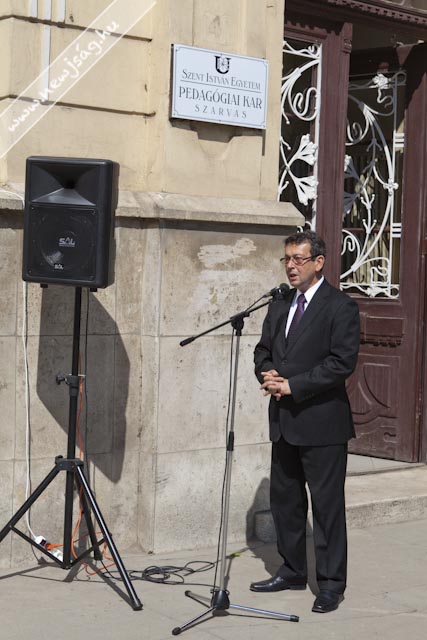 110523hanzoDr. Hanzó Lajosnak, Szarvas egykori diákjának és tanárának az emlékére avattak táblát szombaton a SZIE Pedagógiai Karának Szabadság utcai bejárata mellett. Az emléktáblát Szarvas Város önkormányzata és a Szarvasi Öregdiákok Baráti Köre közösen állította a köztiszteletnek örvendő tanárnak.
