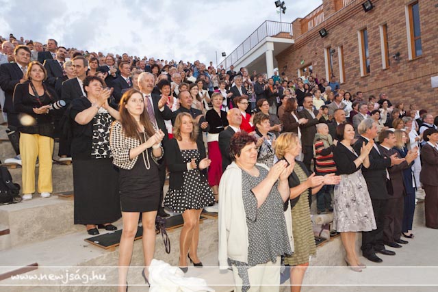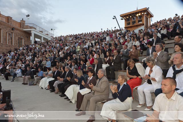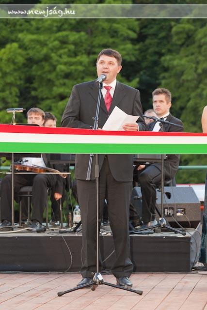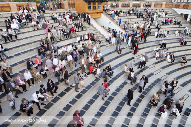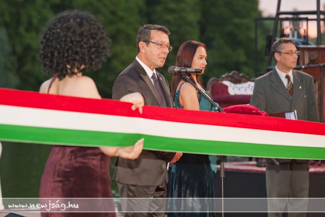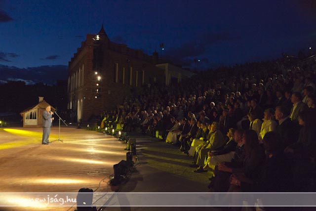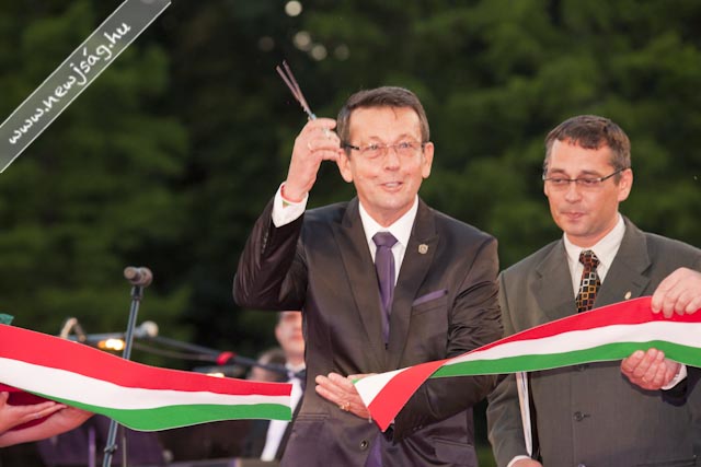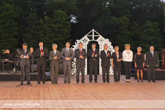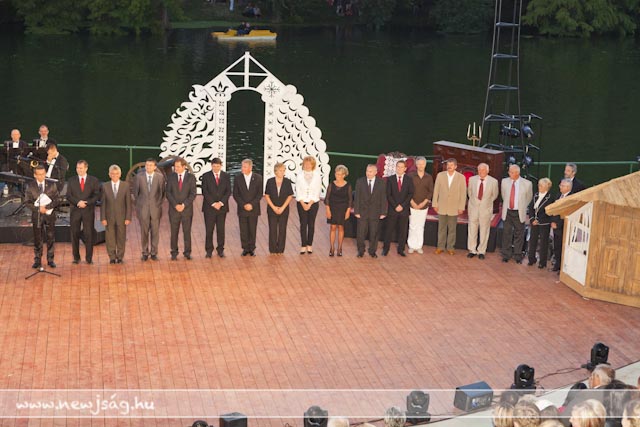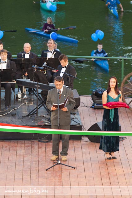 Babák Mihály mindenkit a színpadra szólított akinek valamilyen szerepe volt abban, hogy a Víziszínpad létrejöhetett, Takács Miklóstól, a pontonokra épített eredeti víziszínpad ötletgazdájától, Szuhaj Györgyön keresztül, akinek a skicce adta az alapját az egész projektnek, egészen a tervezésben, az engedélyezésben és a kivitelezésben résztvevőkig. Polgármesterünk a szabadtéri színpadot egészen az Árpád udvarán felállított Nyári Színkörig vezette vissza, majd a 2000-es évet, az első mobil víziszínpadot tekintette fontos mérföldkőnek. 2004-ben született meg egy állandó építésű víziszínpadnak a víziója, aminek következménye a most átadásra kerülő 1026 férőhelyes létesítmény.