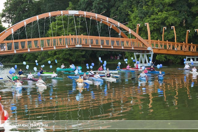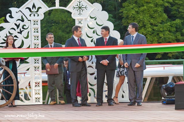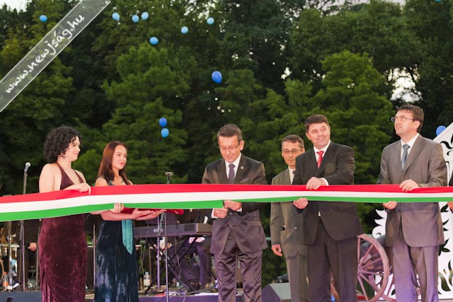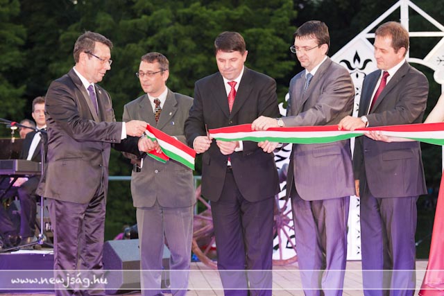 A megnyitóra Babák Mihály polgármester, Farkas Zoltán, a Megyegyűlés elnöke, Domokos László, az Állami Számvevőszék elnöke és Dankó Béla országgyűlési képviselő stílszerűen a víz felől, a Katalin II-vel érkeztek. A színpad és a híd közötti Körös szakasz megtelt kék lufival érkező kajakosokkal, amiket az ünnepi beszédek után, a szalag átvágása közben elengedtek.