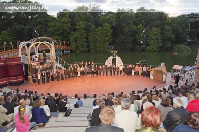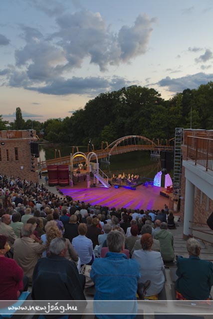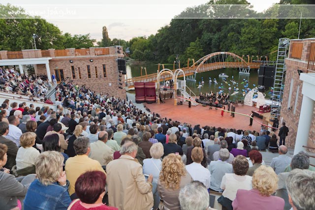 Úgy néz ki, hogy az égiek is a kegyelmükbe fogadták Szarvas új büszkeségét, mert mindhárom teltházas rendezvényen kellemes idő fogadta a nézőket, a beharangozott eső elmaradt. Reméljük, a továbbiakban is hasonló szerencse kíséri a Víziszínpadra, pontosabban a Vízi Színházba látogató nézőket előadókat!