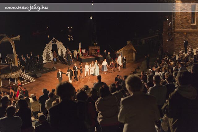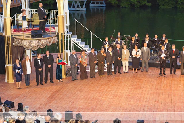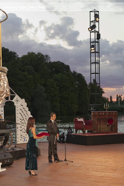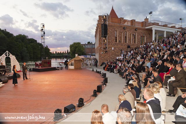 A publikum számára nyolc órakor kezdődött az ünnepi műsor a Békés Megyei Jókai Színház művészeinek, ill. Straub Dezsőnek a közreműködésével, ahol a háziasszony Fodor Zsóka, a házigazda Józsa Mihály volt. Az est folyamán részleteket láthattunk előadásaikból, miközben a két házigazda elmondta, hogy miket tekinthetnek meg a Víziszínpad látogatói a nyár folyamán.