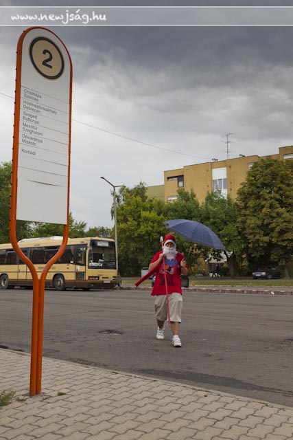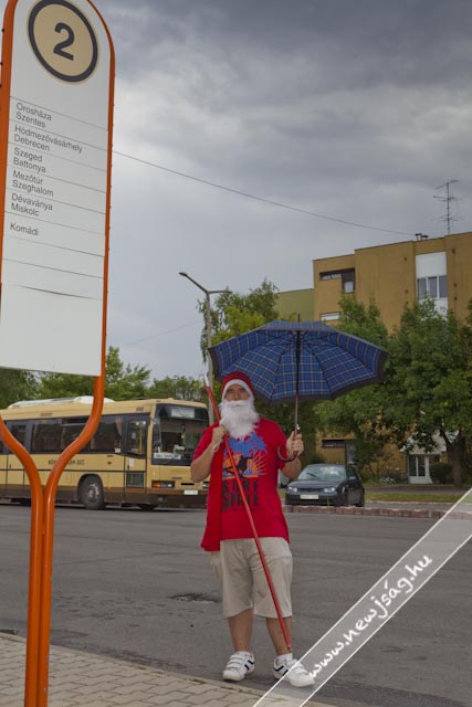 Néhány napja azt hallottam a rádióban, hogy a londoni áruházak, köztük a Harrods is, július 28-án elindították a karácsonyi vásárt. Csodálkozhatunk, hogy hogy jut ilyenkor az angolok eszébe a karácsony és a Mikulás! Jelen esetben csórták az ötletet, mégpedig Szarvasról. Július 22-ére ugyanis Szabó Zsolt, a RémSzarvas Kreatív Közösségmozgató Csoport egyetlen legalitásban működő tagja, meghirdette az I. Nagy Nyári RémSzarvas Mikulás Menet fedőnevű akcióját. Az egyszemélyes menet az Autóbusz Pályaudvar 2. termináljától indult és a Víziszínpadig tartott, miközben a Mikulás cukorkát osztogatot. Az akció célja, hogy kiszakítsa a mindennapok egyhangú robotjából a szarvasiakat ezzel a nem mindennapi közösségmozgató és közönség mosolyogtató eseménnyel. Ha a tömegmozgatás nem is, a mosolyogtatás sikerült. A tömeg csak nem akart gyűlni, olyannyira, hogy a Mikulás szólózni volt kénytelen a Jókai utcán, de aki látta a kettes terminál előtt piros sapkába és klasszikus szakállba bújt fazont, nem bírta nevetés nélkül. Talán az időzítés volt rossz, mert azon a napon minden volt a városban, fotókiállítás, és a tömeg a város napi rendezvényeken volt ezidőtájt.