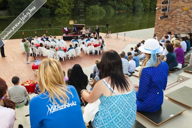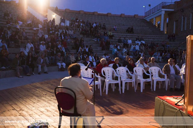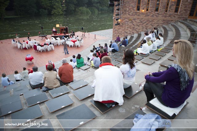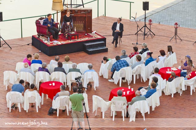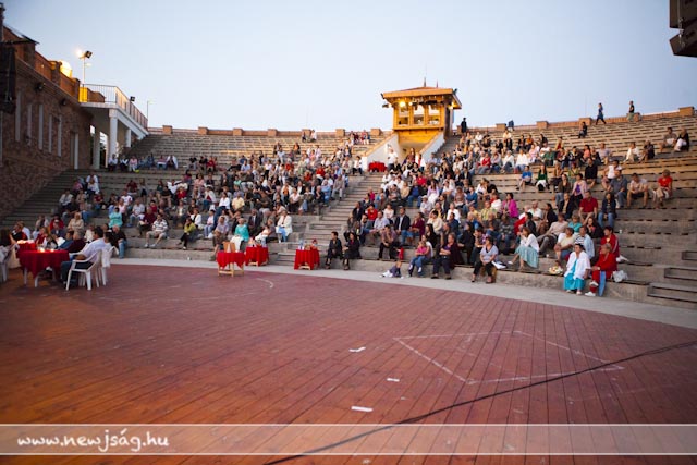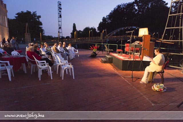 110812versMikor Fekete Péter, a Békés Megyei Jókai Színház igazgatója a Vajda Péter Művelődési Központ Pinceklubjában előadta ötletét, hogy minden este verses-zenés esteket tartanak, rajta kívül kevesen hittek abban, hogy néhány hét elteltével lesz még látogatója azoknak. Akkor pláne mosolyogtatóna optimistának tűnt a dolog, mikor 20-30 nézőt vártak egy-egy előadásra. Estéről-estére behozni annyi embert valahova egy ekkora városban nem kis dolog, sőt, lehetetlennek tűnt. Abból indultunk ki, hogy a szarvasi felolvasóesteken legjobb esetben is jó ha százan voltak, de volt olyan is, amin tízen, de arra is volt példa, hogy a média képviselői többen voltak, mint az érdeklődők. Mintegy másfél hónapnyi vizezés után még mindig van olyan előadás, amikor háromszázan vannak. Háromszázan! Megszámoltam, mert a nézőtér befogadóképességéhez mérten sem tűntek kevésnek. Máskor 150 nézőt számoltam össze, igaz, az már úgy látszott, hogy alig jött el valaki, mert valami jó megy a tévében. 150! Biztos vannak olyan esték, amikor ennél kevesebben vannak, de én egy ilyenen sem voltam mostanában. Jó ötlet, hogy van egy vendéglátó, aki eleve szervez valamennyi közönséget, de sokakat szervezni sem kell, ott vannak estéről estére. A Fekete Péterék által remélt 20-30-as létszám még esős időben is minimumkövetelmény lett.