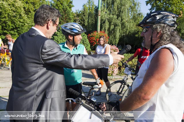 A Képviselőtestület megszakította ülését, és Babák Mihály polgármester vezetésével a téren fogadta a kerékpárosokat, köztük Révész Máriusz képviselőtársát, aki elmondta, hogy papírforma szerint 680 kilométer van mögöttük, de tettek egy 30-35 kilométeres kitérőt, így már túl vannak a 700-on. A túra célja az, segítsék a közvetlen kapcsolatteremtést az anyaország és a hatáton túli magyarság között, és augusztus 20-án, közös nemzeti ünnepünkön, Budapestre érjenek, ami minden bizonnyal sikerülni is fog nekik. Az éjszakát a városban töltik, hogy reggel pihenten indulhassanak tovább Szentes felé.