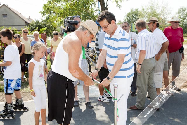 A megnyitóra eljöttek a környékbeli lakosok, képviselők és a Polgármesteri Hivatal munkatársai is, de itt voltak Kardos, Csabacsűd és Békéssszentandrás polgármesterei is. Polgármesterünk gratulált a körzet korábbi képviselőjének, Besenczy Zoltánnak, és a jelenleginek Dernovics Lászlónak is, majd a szalagátvágás után mindenki kerékpárra pattant és közösen kikerekeztek a Régimódi Vendéglőig, ahol a bringázás jutalma nagyon finom lábszárpörkölt volt.