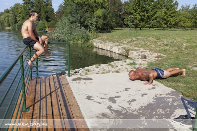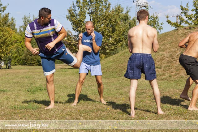 A sportdélután páros-gyakorlatokkal kezdődött, majd egy kis úszás következett. Az úszáshoz más jellegű izomzat, vagy annak hiánya szükséges, mint a K1-hez, ez egyből kiderült akkor, mikor az Köröst átszelve a fiúk a szemközti partról is hallhatóan pihegtek. A leggyorsabb jutalma az volt, hogy a móló korlátján ülve nézhette, ahogy társai fekvőtámaszokat nyomnak. Kis pihenő után 3 kilométer futás következett a Történelmi Emlékúton. A triatlon zárószámaként kerékpáros iramszakaszokat tekertek a srácok, majd egy kis fürdőzés következett a bázisnak tekintett országközépnél, ahol egyébként nem kis feltűnést keltettek az ott fürdőző fiatalok és turisták körében, akik kicsit megálltak, hogy emlékezzenek fittebb korukra.