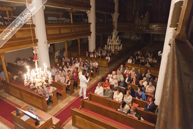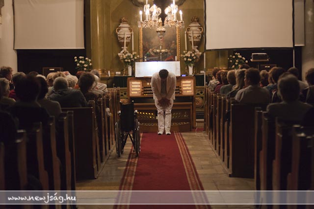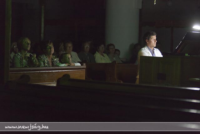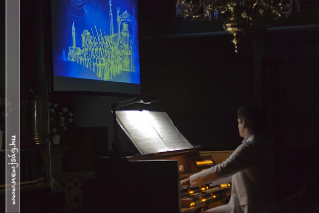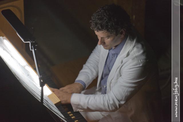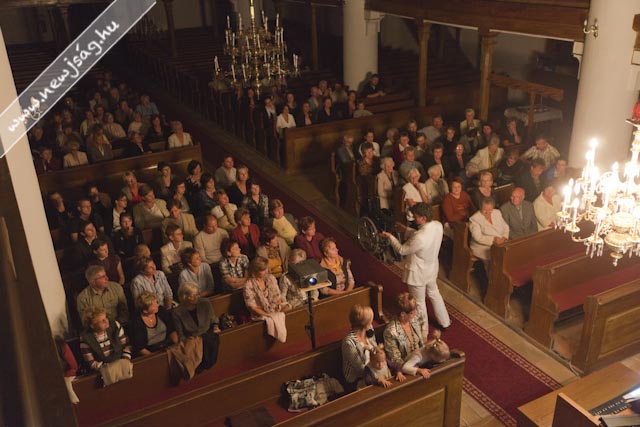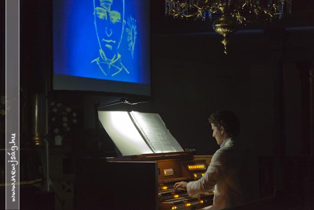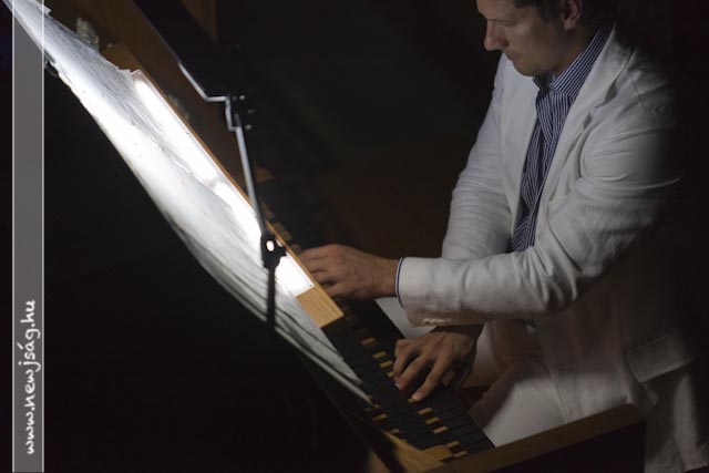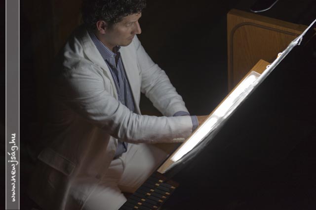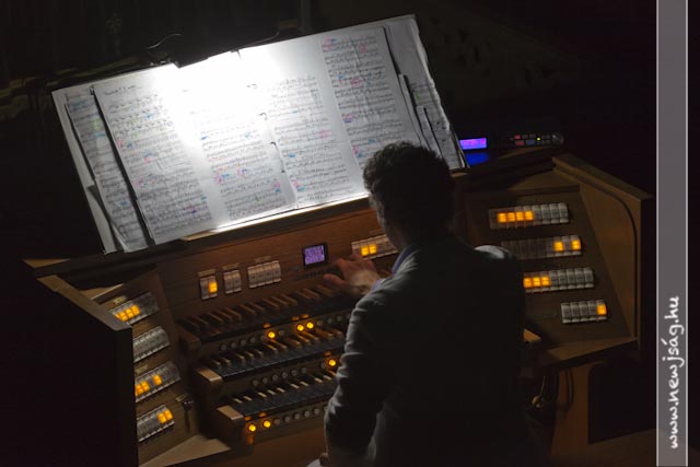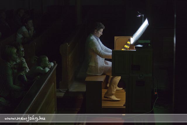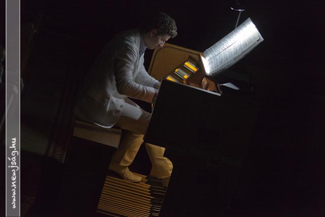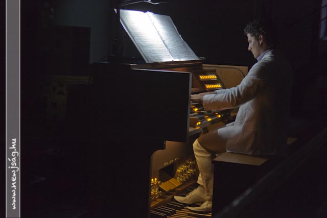 111005rakaszAlapvetően ez csak a koncert címválasztására igaz, maga az orgonaművész, Rákász Gergely, fehér öltönyben lépett közönsége elé az Evangélikus Ótemplomban. Az “Egy Koncert Kékben” című orgonakoncerten olyan népszerű zeneszerzők műveinek orgonaátiratai csendültek fel, mint Gershwin, Strauss és Ravel.