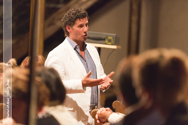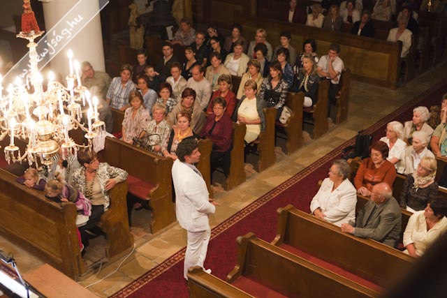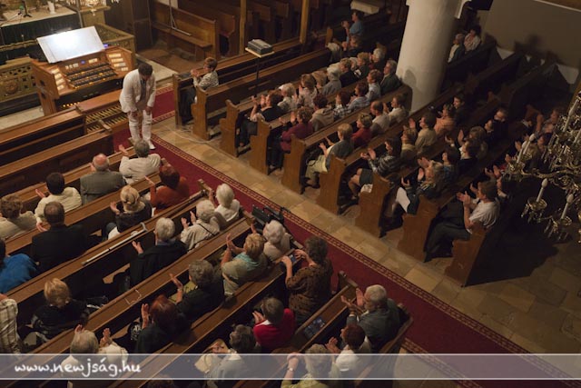 Rákász Gergely amellett, hogy koncertorgonista, igazi showman is. Bár ez a kettő lehet, hogy együtt kell járjon, mert egy orgonista, akit a hátáról ismernek meg, arcról nem, nem biztos, hogy tömegeket tud vonzani. A mi orgonistánk azonban figyelmet vonzó stílusban ontotta az információkat a zeneművek létrejöttének körülményeiről, érdekességeiről. Lenyűgözve hallgatta most is a közönsége, amikor a Bolerónak, vagy a Kék Duna keringőnek a történetéről mesélt.