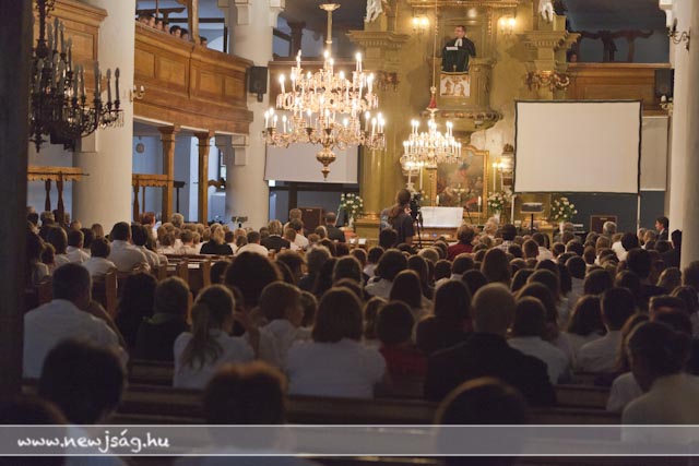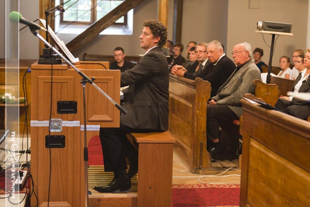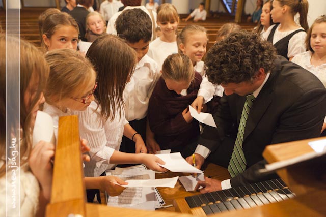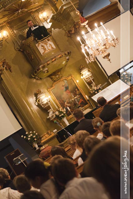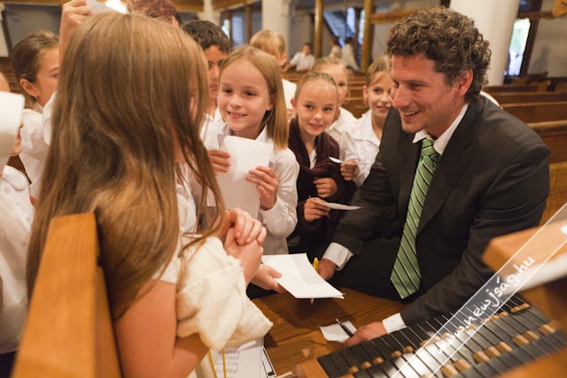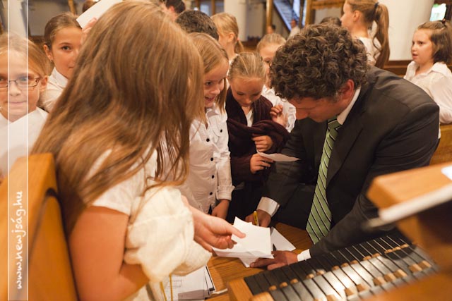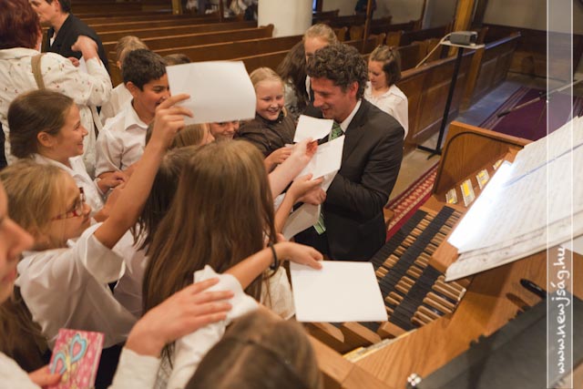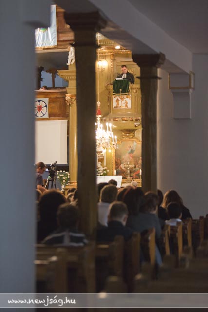 Istentisztelet keretében emlékeztek az aradi hősökre az Evangélikus Ótemplomban. Miután a tegnapi nap folyamán Rákász Gergely megkerülhetetlenül beköltözött a templomba, elkerülhetetlen volt, hogy aktívan közre is működjön a Benka Gyula Általános Iskola ünnepi műsorában, ami a Himnusszal kezdődött, de ezúttal orgonakísérettel. Míg ő lent orgonált, az aradi tizenhármat megszemélyesítő 13 benkás fiú úgy állt a karzaton, mint az orgonasípok.