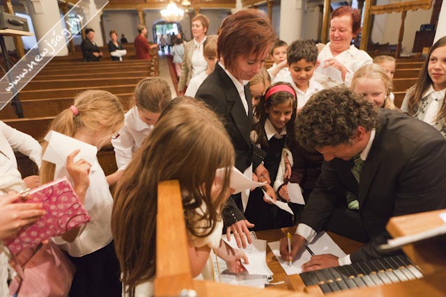 Az ünnepi istentisztelet után a többen a 48-as emlékműhöz mentek, hogy elhelyezzék a megemlékezés virágait, a nap hőse, Rákász Gergely, pedig végeláthatatlan autogramosztásba kezdett.