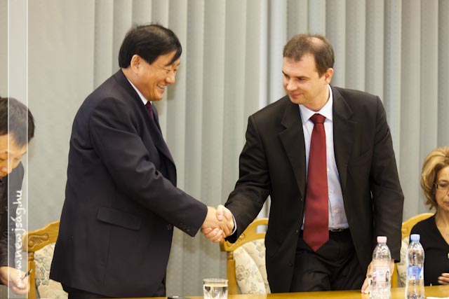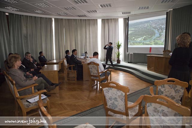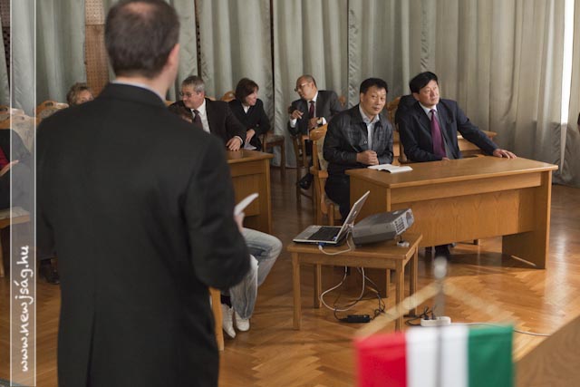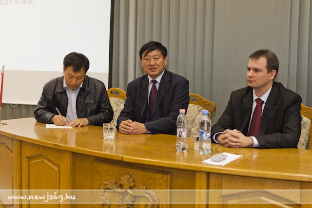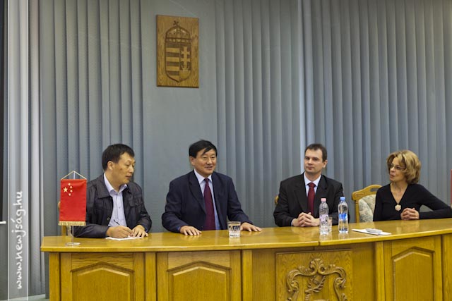 111019wuxiA találkozó alatt ismét elképesztettek azzal, hogy a kínai állam milyen nagyvonalú a kutatási-fejlesztési projektekben. Míg nálunk 15%-os állami támogatást kap, jelen esetben a Halászati és Öntözési Kutatóintézet, addig Wuxi testvérvárosunkban működő hasonló profilú intézet 80-90%-osat. Az intézet bemutatása után a kínai delegáció megtekintette a Szarvas Fish Kft. telephelyét, majd a Polgármesteri Hivatalban folytatták látogatásukat. Itt Hodálik Pál és Besenczy Zoltán alpolgármester valamint a hivatal vezető munkatársai fogadták a vendégeket. Hodálik Pál angol nyelven mutatta be Szarvast, majd Xu Guomin, a küldöttség vezetője tette ugyanezt városával. Megtudtuk, hogy Wuxi egy 5 millió lakosú, mintegy 5000 négyzetkilométeren elterülő város. GDP-jét tekintve a kínai városokat figyelembe véve benne van az első tízben. Rendelkezik néhány aprósággal, amit irigyelhetünk. Saját repülőtere, hatalmas vasútállomása van és Sanghajjal közvetlenül autópálya köti össze. Mi meg egy sima autóútért ácsingózunk évtizedek óta.