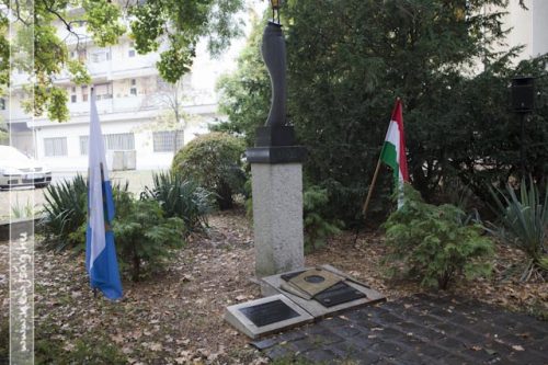 A megemlékezés után a tömeg az 56-os emlékműhöz vonult, amin még látszanak a tavalyi vörös festékes támadás nyomai. Az idén is nagyon sok párt és civil szervezet nevében helyeztek el koszorút a fáklya tövénél.