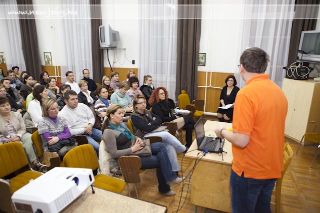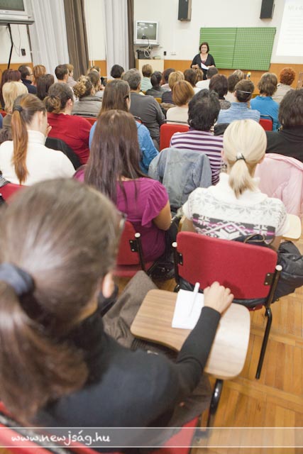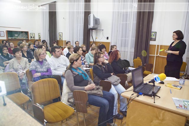 Rácz Tünde csatát már vesztett otthon a gyereknevelés terén, de reményei szerint háborút még nem. Szakmai szemmel vezette le, hogy miért jó, ha otthon hisztizik a gyerek és miért szerencsés az, ha a testvérek otthon veszekednek. A harminc percre tervezett előadás után a szülők kérdezhettek az előadótól, sőt, a problémásabb esetek négyszemközti megbeszélésére is alkalmat adott Rácz Tünde.