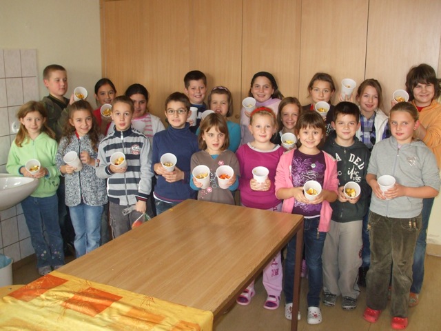A kis szakácsok salátakészítés közben megtapasztalhatták, hogyan s milyen mennyiségben termelődik a hulladék. Az „Egészség hetén” figyelmet szenteltünk az így keletkezett melléktermékek feldolgozási módjaira is, kapcsolódva ezzel a természetvédelemhez. A gyerekekben tudatosítottuk: ez is hozzátartozik saját egészségük védelméhez. Az iskolai DÖK- faliújságon több napon keresztül olvashattak az érdeklődők ehhez a témához kapcsolódó tanulmányokat. Megszerzett ismereteiket egy totó kitöltésével mérhették fel, a legügyesebbek jutalomban részesültek.