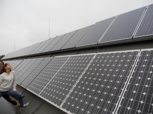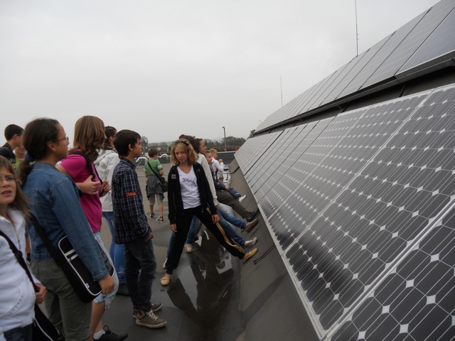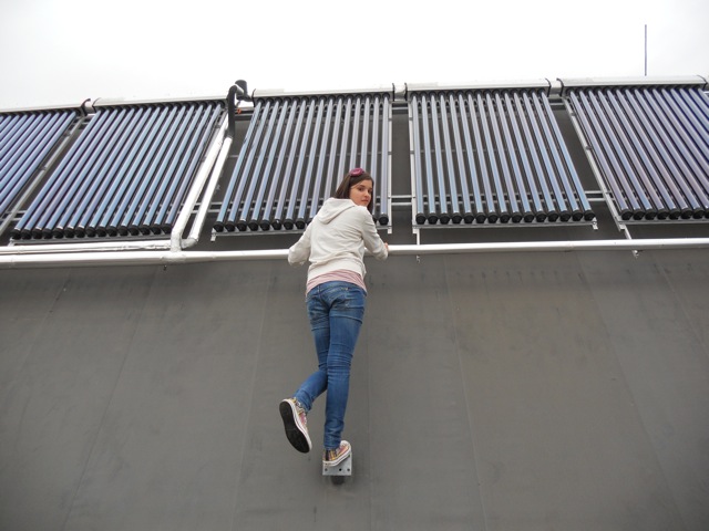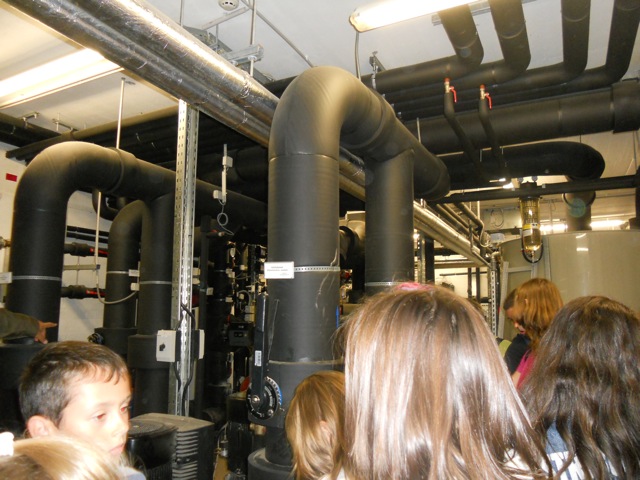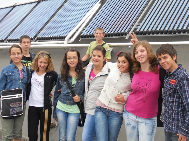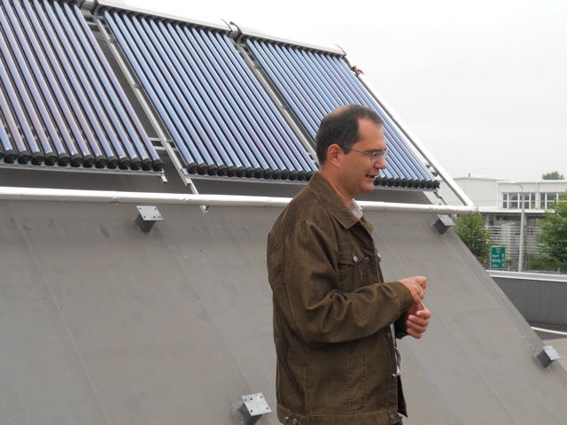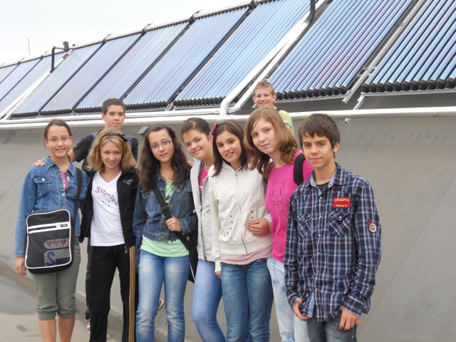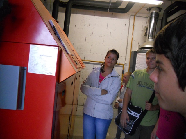 A fűtésrendszert segítik a napelemek, melyek energiát termelnek és a napkollektorok, melyek a melegvízellátást biztosítják. Mindezt bemutatták nekünk, mindenhol végigvezettek és elmagyarázták a rendszer működését.