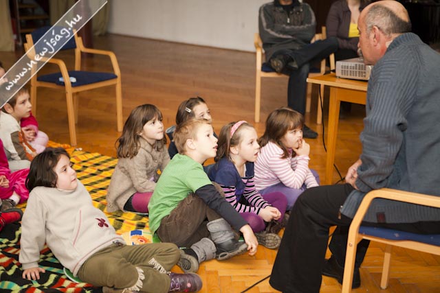 111128harencsarHarencsár László 2008-ban írta első meséjét a saját és családja szórakoztatására. Megmutatta kollégáinak is és mindenki biztatására az internet segítségével a nagyobb nyilvánosság elé is tárta azokat. Miután nyugdíjba ment, felajánlotta az iskoláknak, hogy nagyon szívesen elmegy és mesél a gyerekeknek, így közvetlen visszacsatolása van a gyerekek arcán keresztül. Csepel, Kézdivásárhely, Nagyszalonta és egy sor korábbi helyszín után így érkezett Harencsár László szerdán a Tessedik Sámuel Múzeum dísztermébe, ahol maroknyi gyerekcsapat várta.