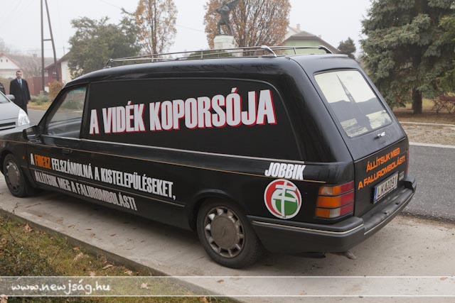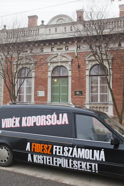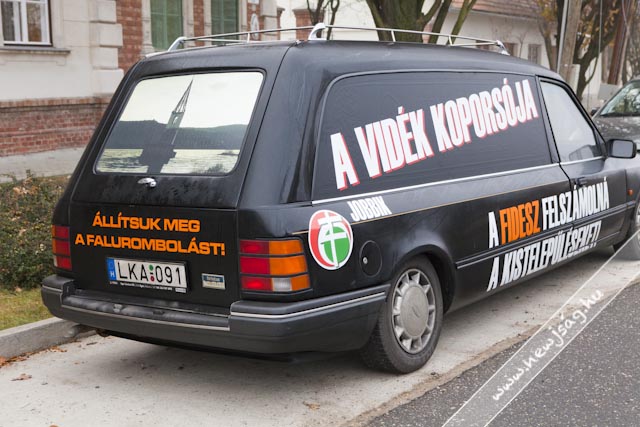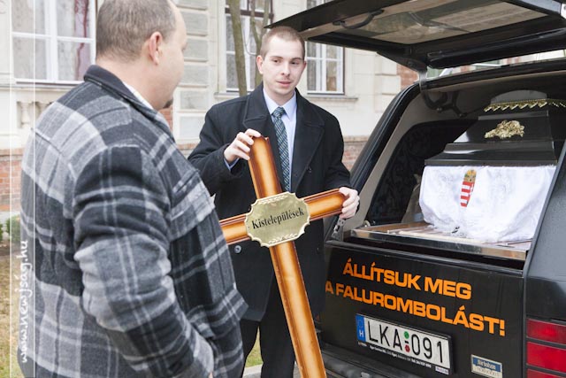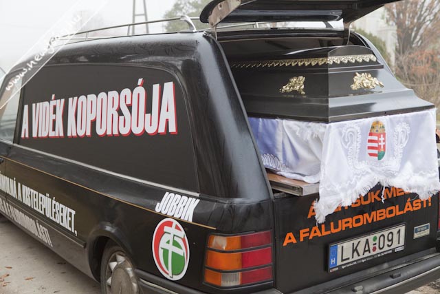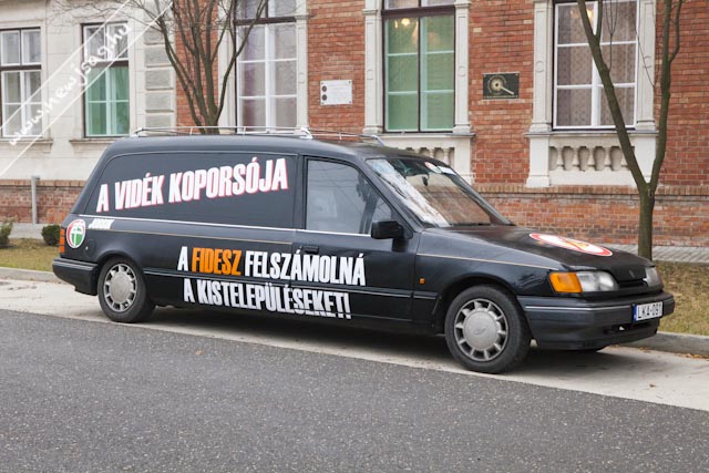A halottaskocsi nem volt üres. Benne volt a vidék koporsója, amit kb. egy hete indítottak igen hosszú utolsó útjára. Ennek során minden megyébe ellátogatnak, hogy december 19-ére, a törvény végszavazására az Országházhoz érjenek vissza. Az út során a koporsóba beleteszik azoknak az önkormányzatoknak a fényképét, ahol a javaslat szerint megszűnnének az oktatási és egészségügyi intézmények.