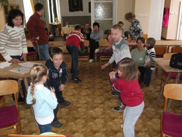 De játszóházból sosem elég! December 10-én az Újtemplom imatermében gyűltek össze kicsik és nagyok szüleikkel együtt. A gyerekeket játékos feladatokkal szórakoztatta Anikó néni, a kis Jézus születésének történetét szokatlanul érdekes, játékos formában láttál, hallották a gyerekek Roland bácsitól. A versengés után a megérdemelt ropogtatnivalókat fogyasztották, majd az óvó nénikkel karácsonyfadíszeket készítettek. Julika nénivel csipkés papírangyalkát, Margó nénivel csuhéangyalkát, Kati nénivel papírfenyőfát, velem pedig textillel díszített szívecskét.