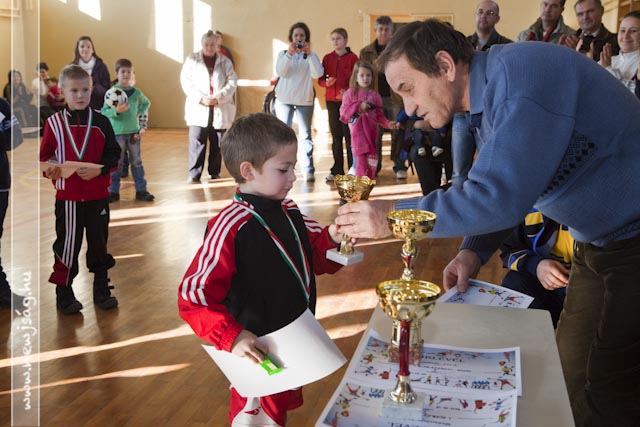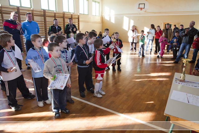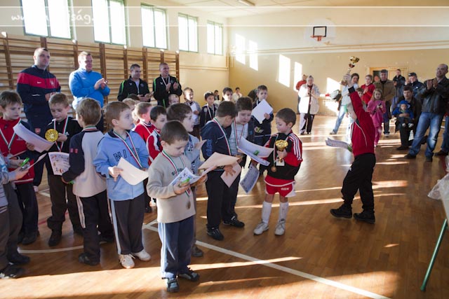A meghívásokat a hétéves korosztályra írta ki az egyesület. Négy csapatra számítottunk, de sajnos a csabacsüdiek betegség miatt távol maradtak. Így változtatva az eredeti elképzeléseken 3 csapat két körben mérkőzött meg egymással. Sajnos a tornaterem szűkös volt kicsit, de ez a gyerekeket nem zavarta az önfeledt játékban. A mérkőzések közötti szünetekben a gyermekek és kísérőik megvendégelésben részesültek. Nagyon gyorsan elrepült a délelőtt és elmondhatom, hogy a rendezvény elérte célját. Legfontossabb szempontként jelöltük ki azt, hogy minden gyermek jól érezze magát, a kapott és a rúgott gólok számától függetlenül. Az eredményhirdetésnél hatalmas élmény volt látnunk gyermekeink csillogó szemét, mosolygó arcát.