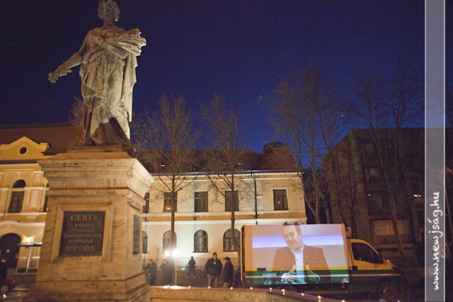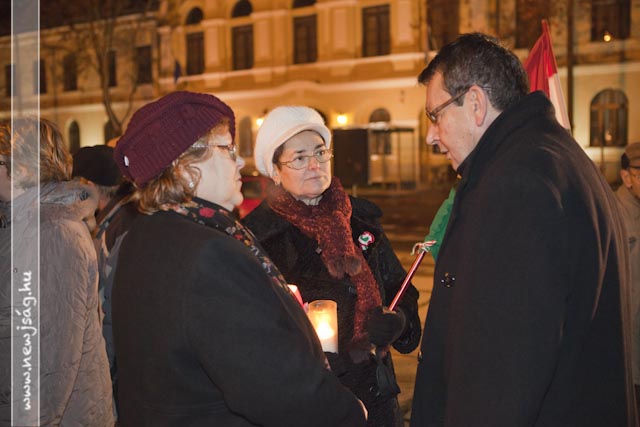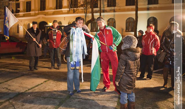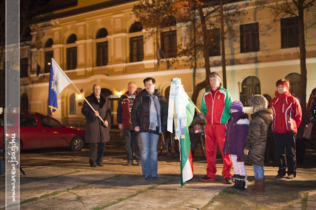 “Ez a kormány nincs egyedül”, jelentette ki Bayer Zsolt, a békemenet főszervezője, ma délután a Kossuth téren, ahol egyes becslések szerint félmilliónyian jöttek össze, hogy jelenlétükkel támogassák Orbán Viktor és kabinetjét. Így történ ez Szarvason is, ahol annak ellenére, hogy sokan felmentek a székesfővárosba, a Szarvasi Gazdák Hagyományőrző Egyesületének hívó szavára mintegy százan várták a nemzetiszínű zászlót a Fő téren, amit futók hoztak Kondorosról és Csabacsűdről. A pesti eseményekről a téren összegyűltek hatalmas kivetítőn tájékozódhattak, miközben helyben piros-fehér-zöld zászlók kíséretében újabb és újabb csoportok csatlakoztak hozzájuk.