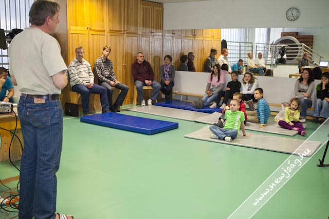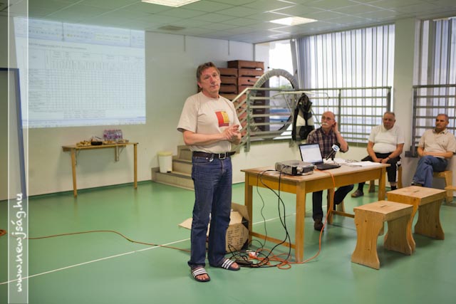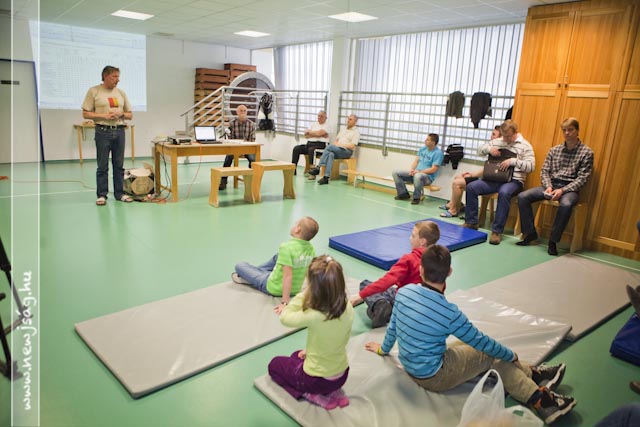 120129szuseVasárnap délelőtt az alkalomhoz illően öltözve, uszodai papucsban, dr. Darida András, az egyesület elnöke számolt be az egyesület tavalyi évéről. Az idén szerényebbek voltak a külsőségek mint a korábbi években, most egyszerűen csak az uszoda tornatermében került sor az évértékelőre. Dr. Darida András a takarékosságot hozta fel indokul, nem mintha bárki a szemére vetette volna, ill. azt, hogy az itt megtakarított egyesületi pénzt is a gyerekek nevezési díjaira fordítják inkább.