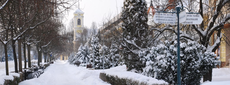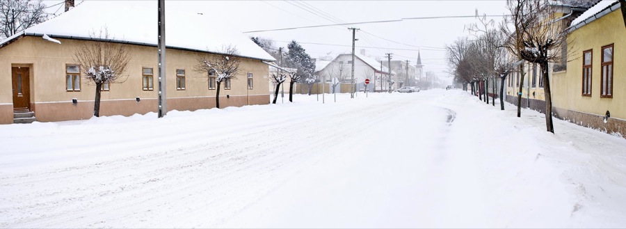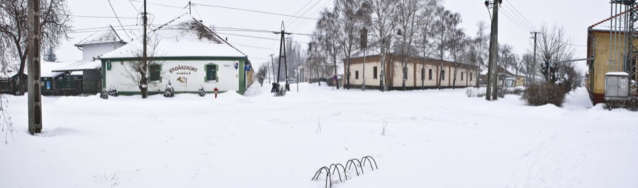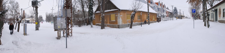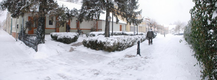Szerencsére volt, akinek maradt ereje a hólapátolás után, hogy gépet vegyen magához és fényképezzen városszerte. A fotókból panorámákat állított össze, és volt olyan kedves, elküldte a newjságnak, hogy mindannyian gyönyörködhessünk bennük, találgassuk, hogy honnan készült a szokatlan perspektívát kínáló kép. Jó találgatást mindenkinek!